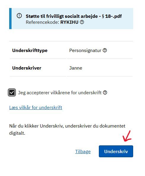 Du skal nu acceptere vilkårene for underskriften. Sæt flueben i boksen.